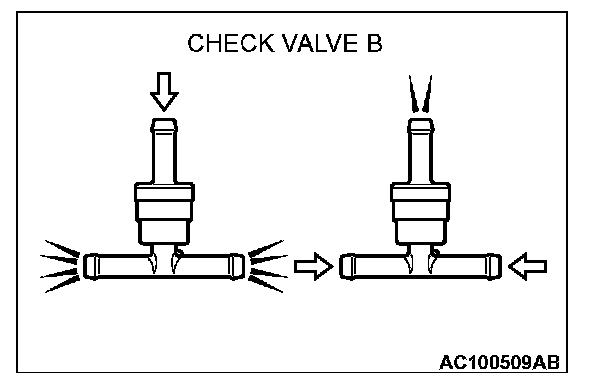4. Set scan tool MB991502 to actuator test mode for item 29: Evaporative Emission Ventilation Solenoid. While the evaporative emission ventilation solenoid is energized, operate the hand vacuum pump and confirm that the solenoid holds vacuum.