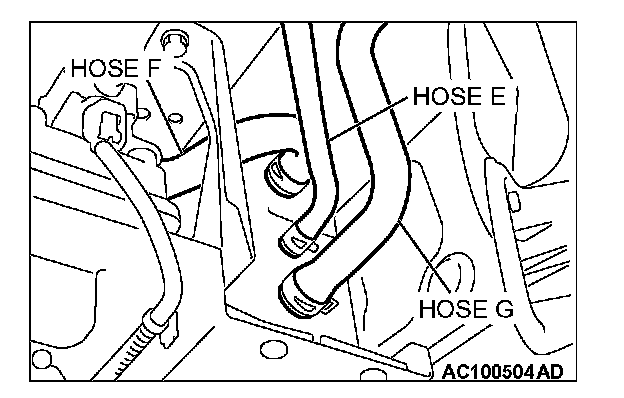 1. Disconnect hoses E, F and G from the evaporative emission canister side, and connect a hand vacuum pump to the evaporative emission canister instead of hose E, and plug the other nipples.