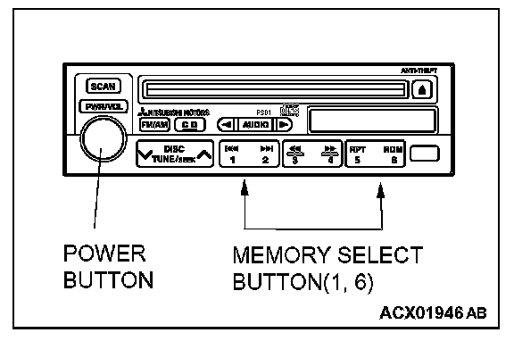 Power supply to the radio and CD player has been suspended for more than an hour continuously by removing the cable from the battery terminal or disconnecting the harness connectors. The power supply to the radio and CD player has been suspended for more than an hour due to a blown fuse or discharged battery.