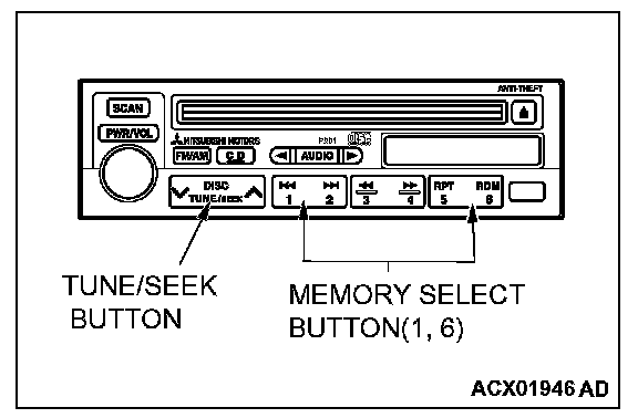 4. If a button other than the memory select "6" button and "EJECT" button is pressed, or the ignition switch is turned to "LOCK" (OFF) position, you will exit from the speaker test mode.