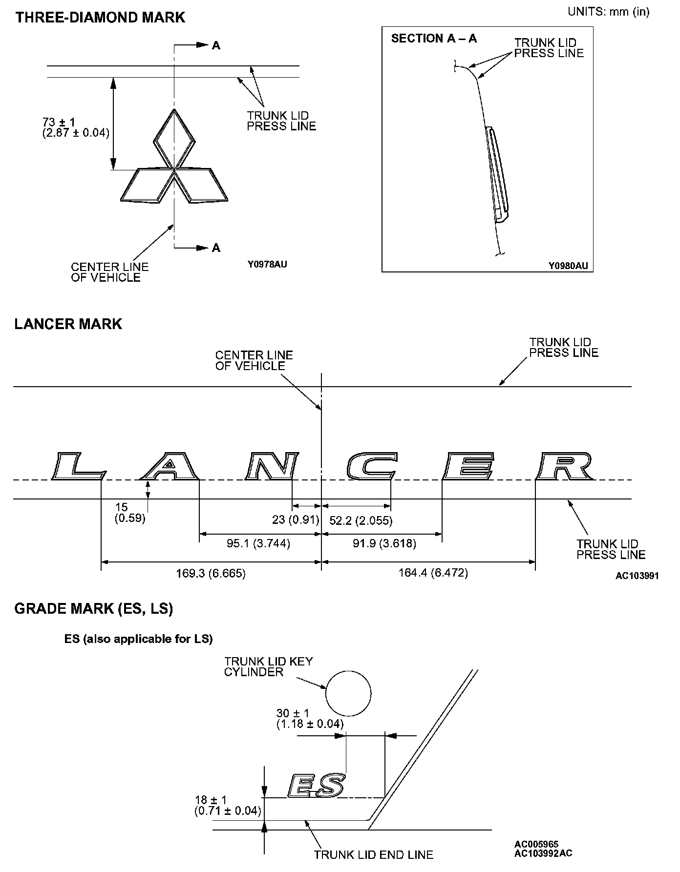 CAUTION: When attaching the marks, the ambient temperature should be 20° - 38° C (60° - 100° F) and the air should be completely free of dust. If the ancient temperature is lower than 20° C (60° F), the marks and the places on the vehicle body where the marks are to be attached should be heated to 20° - 38° C (60° - 100° F).