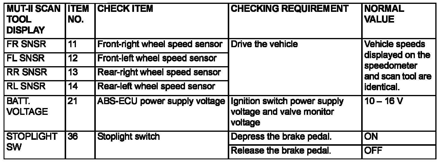 The following items can be read by the scan tool from the ABS-ECU input data.