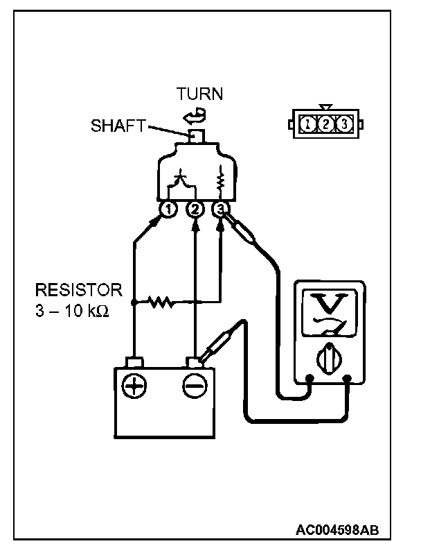 2. Turn the shaft of the vehicle speed sensor and check that there is voltage between terminals 2-3. (one turn = four pulses)