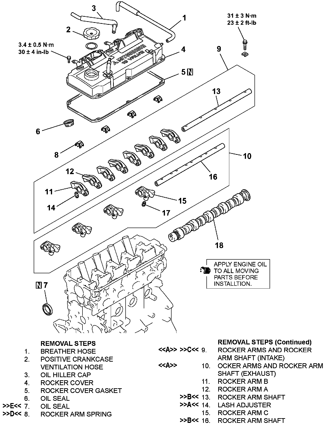]]C[[ ROCKER ARMS AND ROCKER ARM SHAFT INSTALLATION