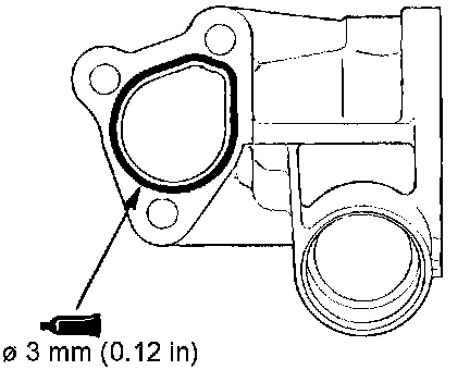 2. Apply a 3 mm (0.12 inch) diameter bead of sealant Mitsubishi Genuine Parts number MD970389, or equivalent to the thermostat case.