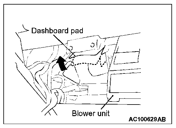 1. When removing the evaporator, cut and fold back the dashboard pad as in the diagram. (The thickness of the pad interferes with the removal of the evaporator.)