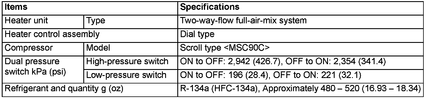 A/C pipe mounting bolt (heater/cooler unit side) 4.9 ± 1.0 Nm (44 ± 8 in-lb)