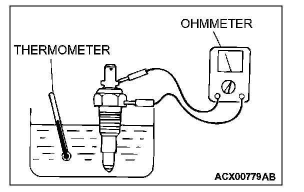 3. Put water temperature gauge unit into the hot water in specified temperature, and ensure that basic resistance is within standard value.