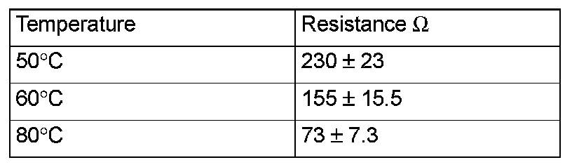 Standard value: 70C °(150 °F) 104 ± 13.5 Ohm