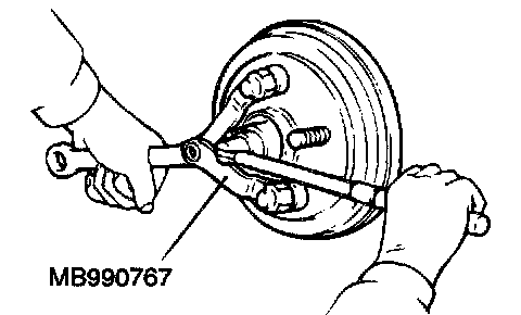Use special tool MB990767 to remove the self-locking nut.