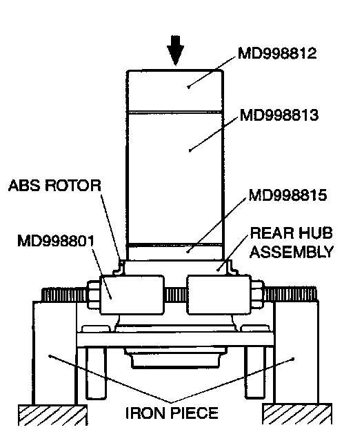 Use special tools MD998812, MD998813, MD998815 and MD998801 to press out ABS rotor from the rear hub assembly.
