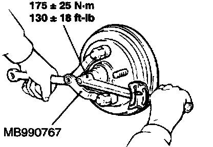 1. Using special tool MB990767, tighten the self-locking nut.