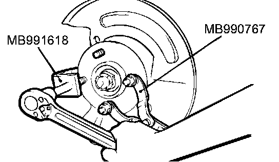 3. Use special tools MB990767 and MB991618 to remove the hub bolts.
