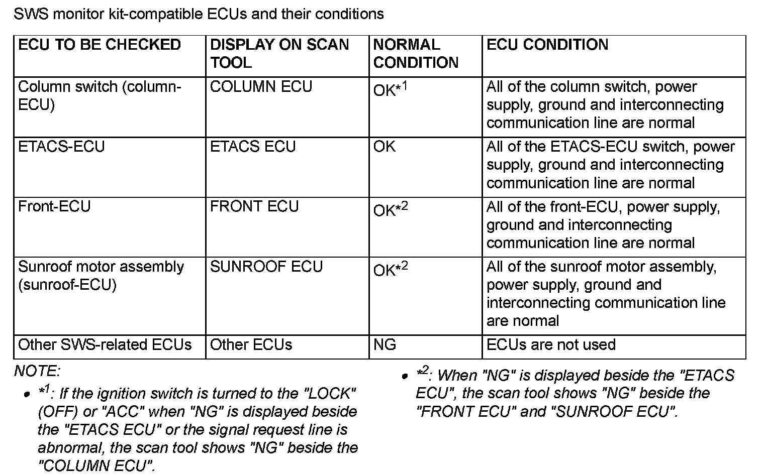 2. The following ECUs can be checked by using the scan tool and the SWS monitor kit.