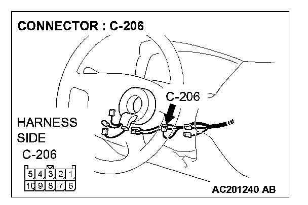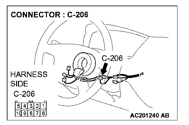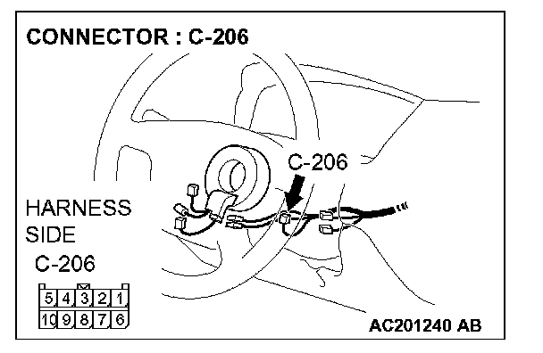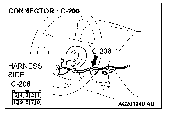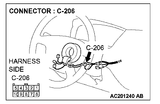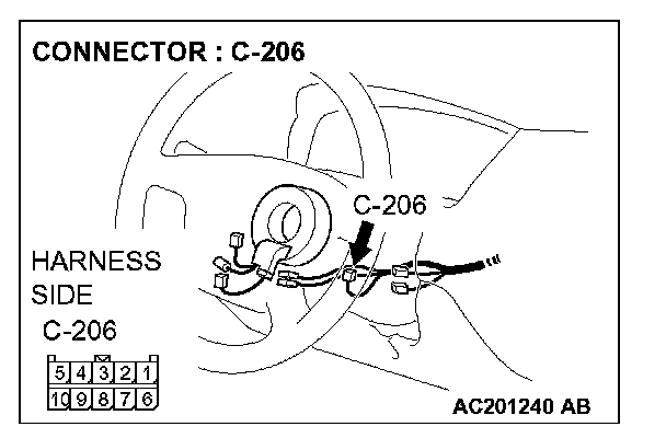 1. Disconnect column switch connector C-206 and measure the resistance available at the harness side of the connector.
