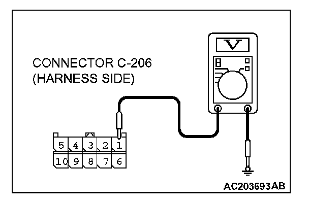 1. Column switch connector C-206 and measure the voltage available at the wiring harness side of the connector.
