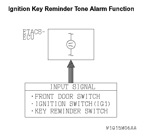 The ETACS-ECU operates the ignition key reminder tone alarm function (sounds the tone alarm intermittently), based on input signals from the following switches:
