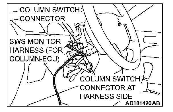 2. Connect SWS monitor kit MB991862 to the column switch connector.