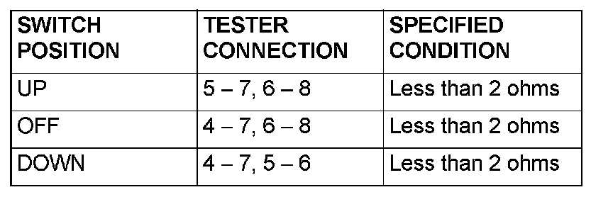 2. Check continuity when the rear power window sub-switch (LH) is operated to "UP" or "DOWN" position.