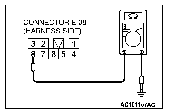 2. Measure the resistance value between terminal 8 and ground.