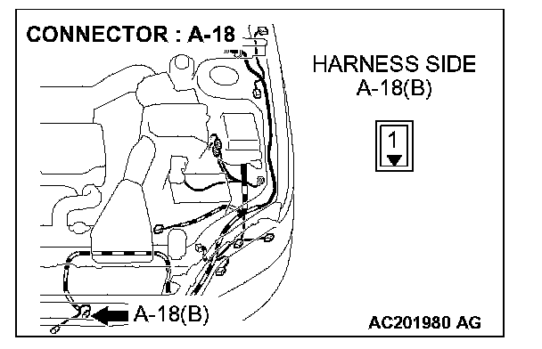 STEP 10. Check the wiring harness between horn relay connector A-05X (terminal 1) and horn (HIGH) connector A-18 (terminal 1).