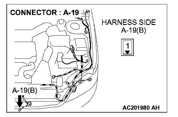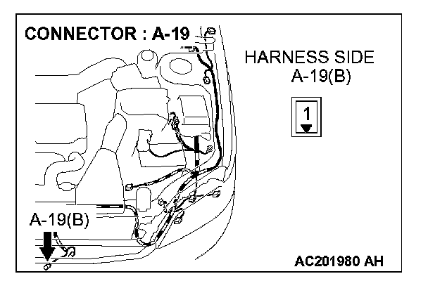 STEP 13. Check the wiring harness between horn relay connector A-05X (terminal 1) and horn (LOW) connector A-19 (terminal 1).