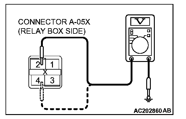 2. Measure the voltage between terminal numbers 2, 4 and ground.