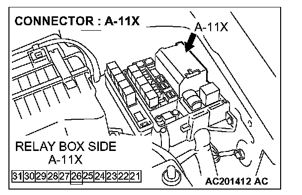 STEP 3. Check windshield wiper motor connector B-01 and front-ECU connector A-11X for loose, corroded or damaged terminals, or terminals pushed back in the connector.