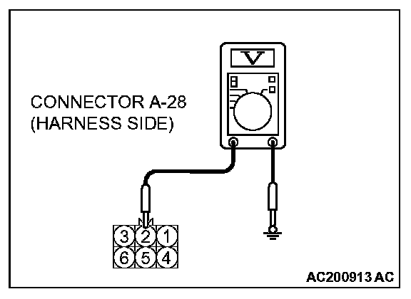 1. Disconnect daytime running light-ECU connector A-28 and measure the voltage available at the wiring harness side of the connector.