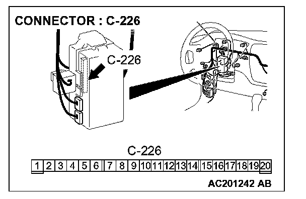 STEP 16. Check luggage compartment light connector F-02 and ETACS-ECU connector C-226 for loose, corroded or damaged terminals, or terminals pushed back in the connector.