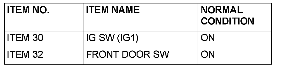 Q: Are normal conditions displayed on the "IG SW (IG1)" and "FRONT DOOR SW"?