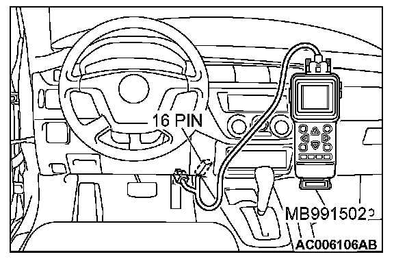 1. Connect scan tool MB991502 to the data link connector.
