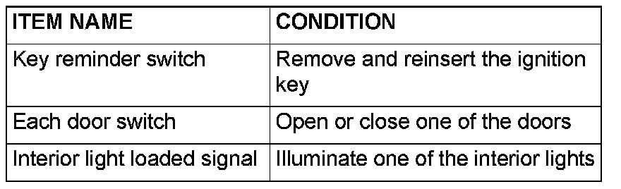 Q: When the key reminder switch, each door switch and the interior light are operated, does scan tool MB991502 sound in each case?
