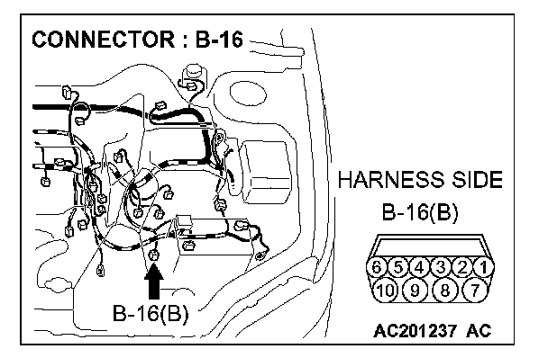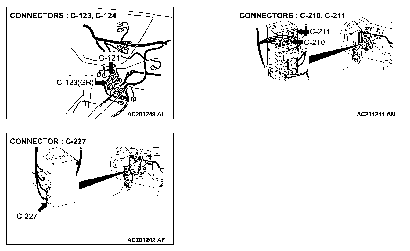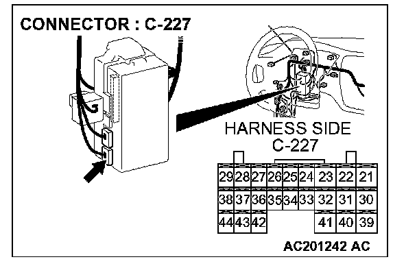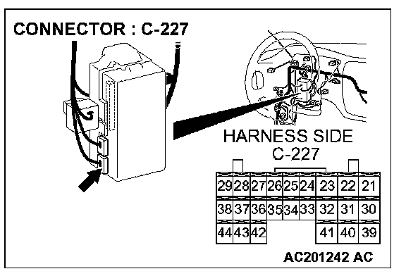 STEP 5. Check park/neutral position switch connector B-16 and ETACS-ECU connector C-227 for loose, corroded or damaged terminals, or terminals pushed back in the connector.