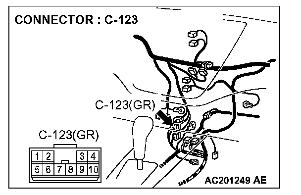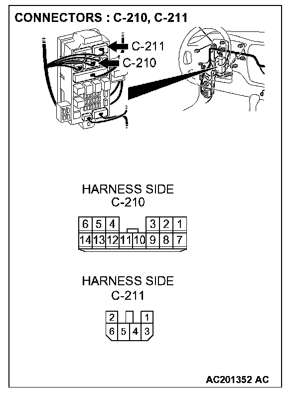 NOTE: Also check junction block connectors C-210, C-211 and intermediate connector C-123 for loose, corroded, or damaged terminals, or terminals pushed back in the connector. If junction block connectors C-210, C-211 or intermediate connectors C-123 is damaged, Repair or replace the damaged component(s) as described in Harness Connector Inspection.