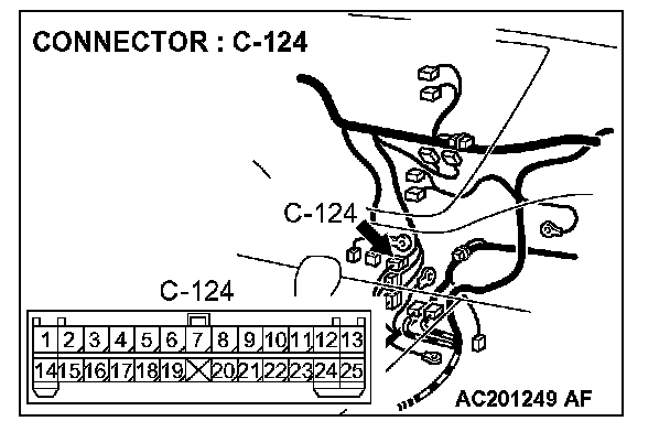 NOTE: Also check joint connector C-101 and intermediate connector C-124 for loose, corroded, or damaged terminals, or terminals pushed back in the connector. If joint connector C-101 or intermediate connectors C-124 is damaged, Repair or replace the damaged component(s) as described in Harness Connector Inspection.