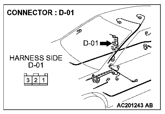 STEP 8. Check front passenger's door switch connector D-01 and ETACS-ECU connector C-228 for loose, corroded or damaged terminals, or terminals pushed back in the connector.