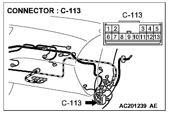 NOTE: Also check intermediate connector C-113 for loose, corroded, or damaged terminals, or terminals pushed back in the connector. If intermediate connectors C-113 is damaged, Repair or replace the damaged component(s) as described in Harness Connector Inspection.