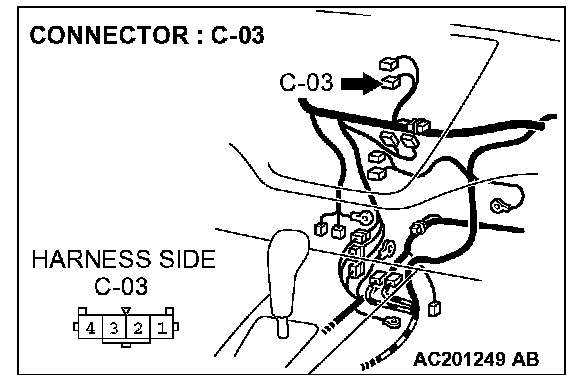 STEP 4. Check the wiring harness between hazard warning light switch connector C-03 (terminal 2) and ground.