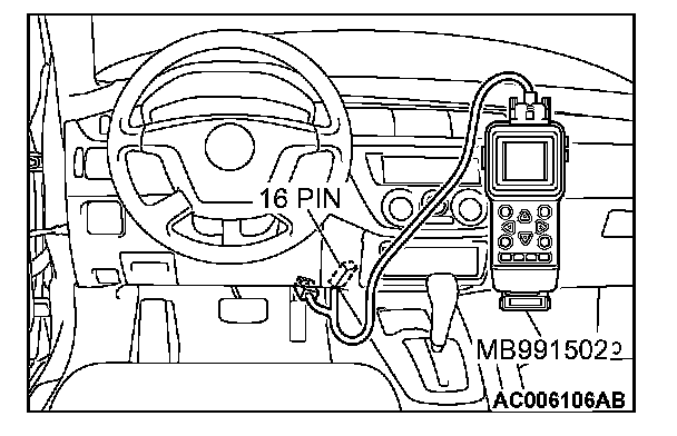 1. Connect scan tool MB991502 to the data link connector.