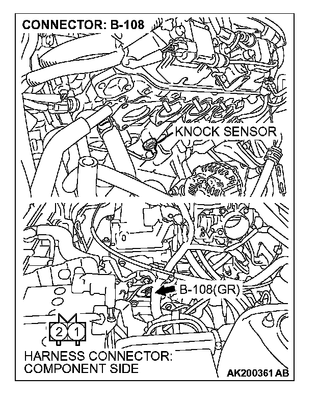 1. The ignition timing should retard more when knock sensor connector B-108 is disconnected than when it is connected.