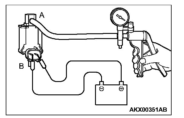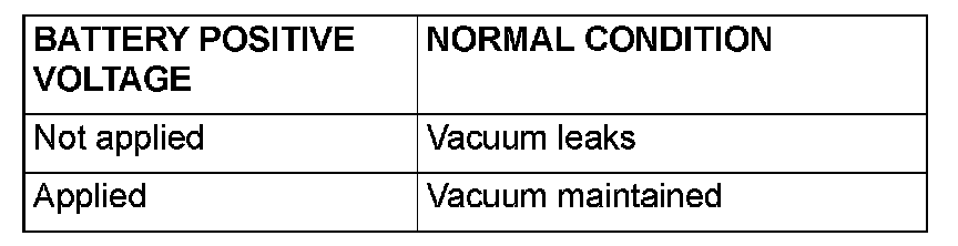 4. As described in the chart, check airtightness by applying a vacuum with voltage applied directly from the battery to the EGR solenoid and without applying voltage.
