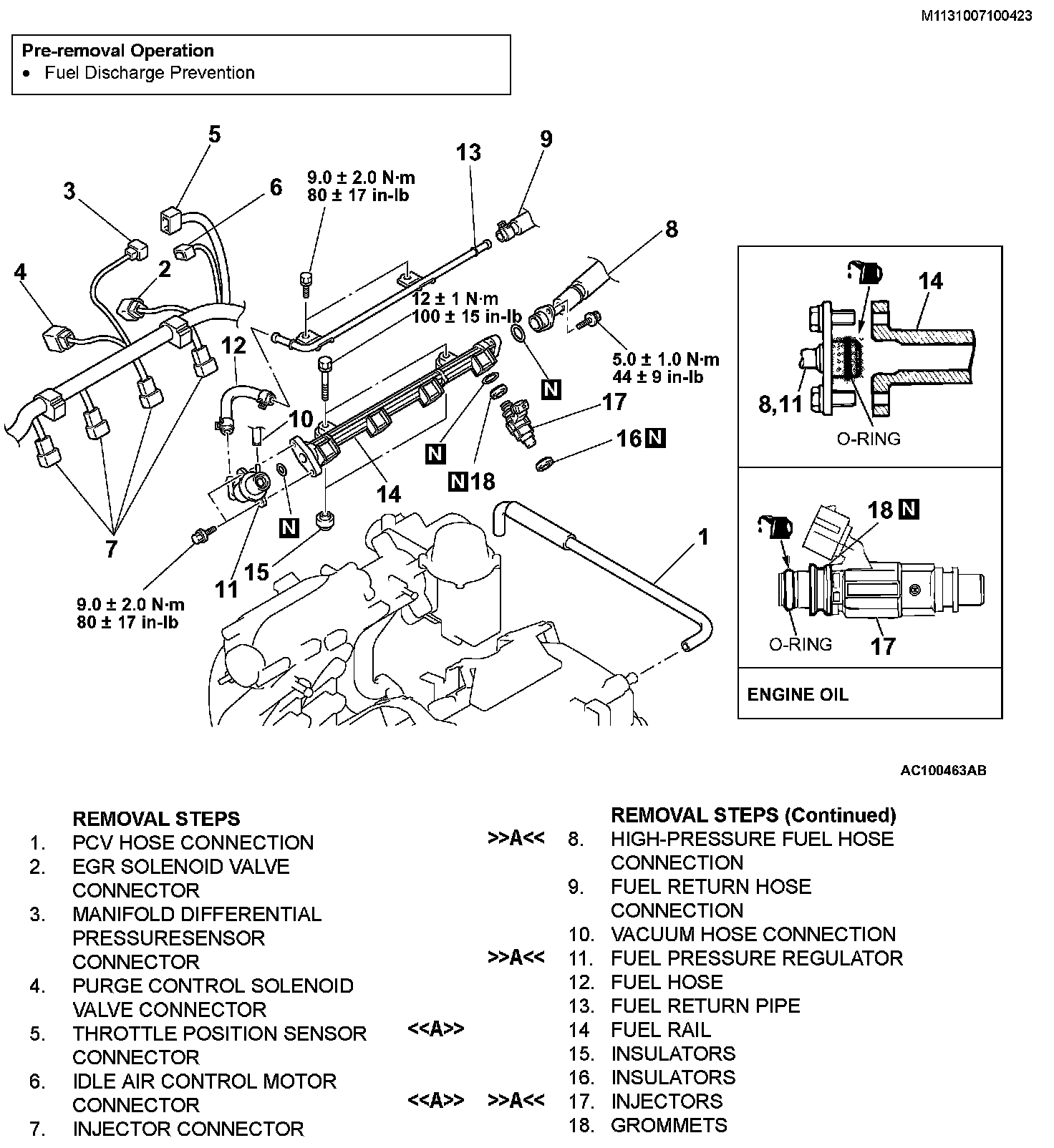 CAUTION: Do not let the engine oil get into the fuel rail will be damaged.