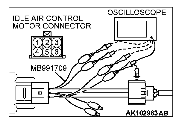 2. Connect the oscilloscope probe to the idle air control motor connector terminal 1, terminal 3, terminal 4 and terminal 6 respectively.