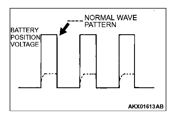 1. Connect the oscilloscope probe to the ECM terminal 10 (for number 1 - number 4), terminal 23 (for number 2 - number 3).