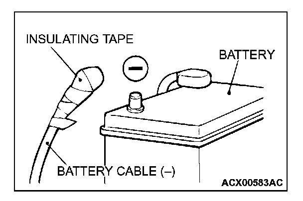 Disconnect the negative (-) battery cable from the battery and tape the terminal to prevent accidental connection and air bag deployment.