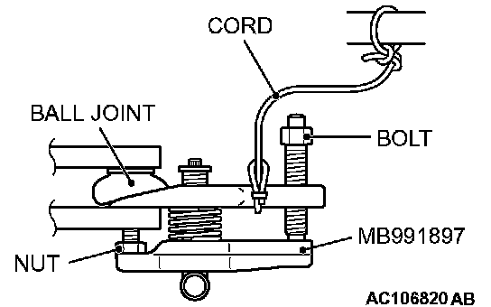 ^ Do not remove the nut from the ball joint. Loosen it and use special tool MB991897 to avoid possible damage to the ball joint threads.