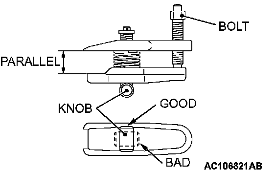 2. Turn the bolt and knob as necessary to make the jaws of special tool MB991897 parallel, tighten the bolt by hand and confirm that the jaws are still parallel.