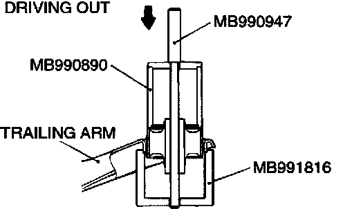 1. Use the special tools to drive out the trailing arm bushing.