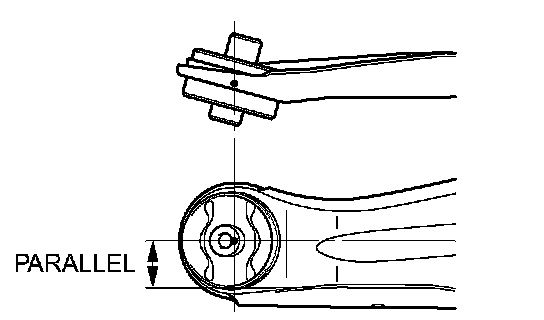 2) Make sure that the hollow of the trailing arm bushing is located as shown in the illustration.